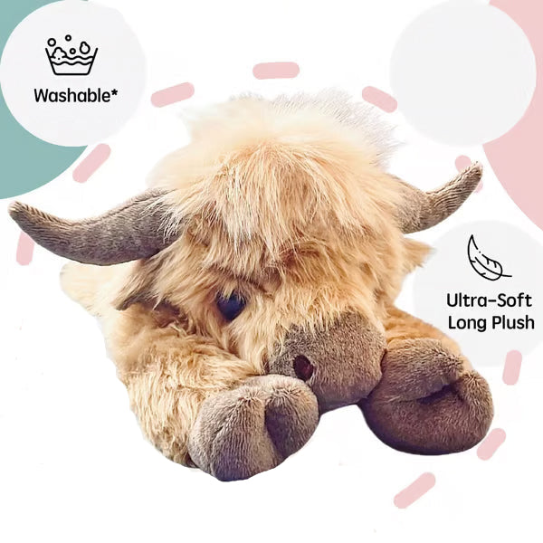Whether it's soothing discomfort or snuggling up for sleep, our Highland Plush Cow offers warmth, comfort, and the softest embrace.