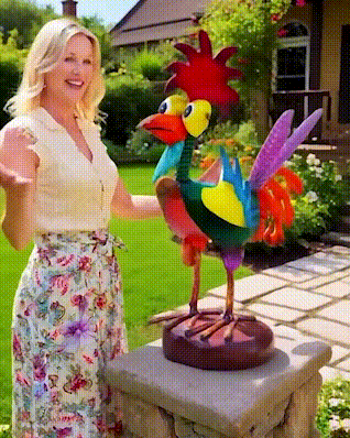 Colorful Craftsmanship:This metal rooster statueshowcases vibrant, multi-color artistry that enhances anygarden or courtyard setting.