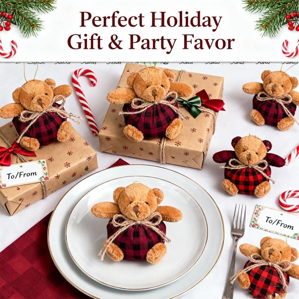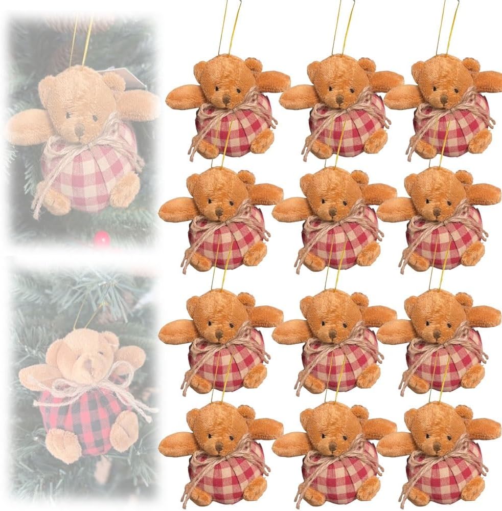 Crafted with premium fabrics, our bear ornament in Pink and Red ensures durability and a pleasant feel. The exquisite craftsmanship of these Mini Stuffed Plush Plaid Bears Christmas Tree Hanging Decorations means they maintain their stunning appearance throughout many holiday seasons.