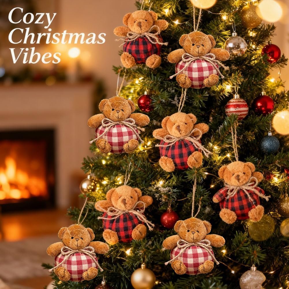 Crafted with love & exquisite details, our durable plaid bear ornament brings cozy charm to your tree and others. A gift that warms the heart!🎁